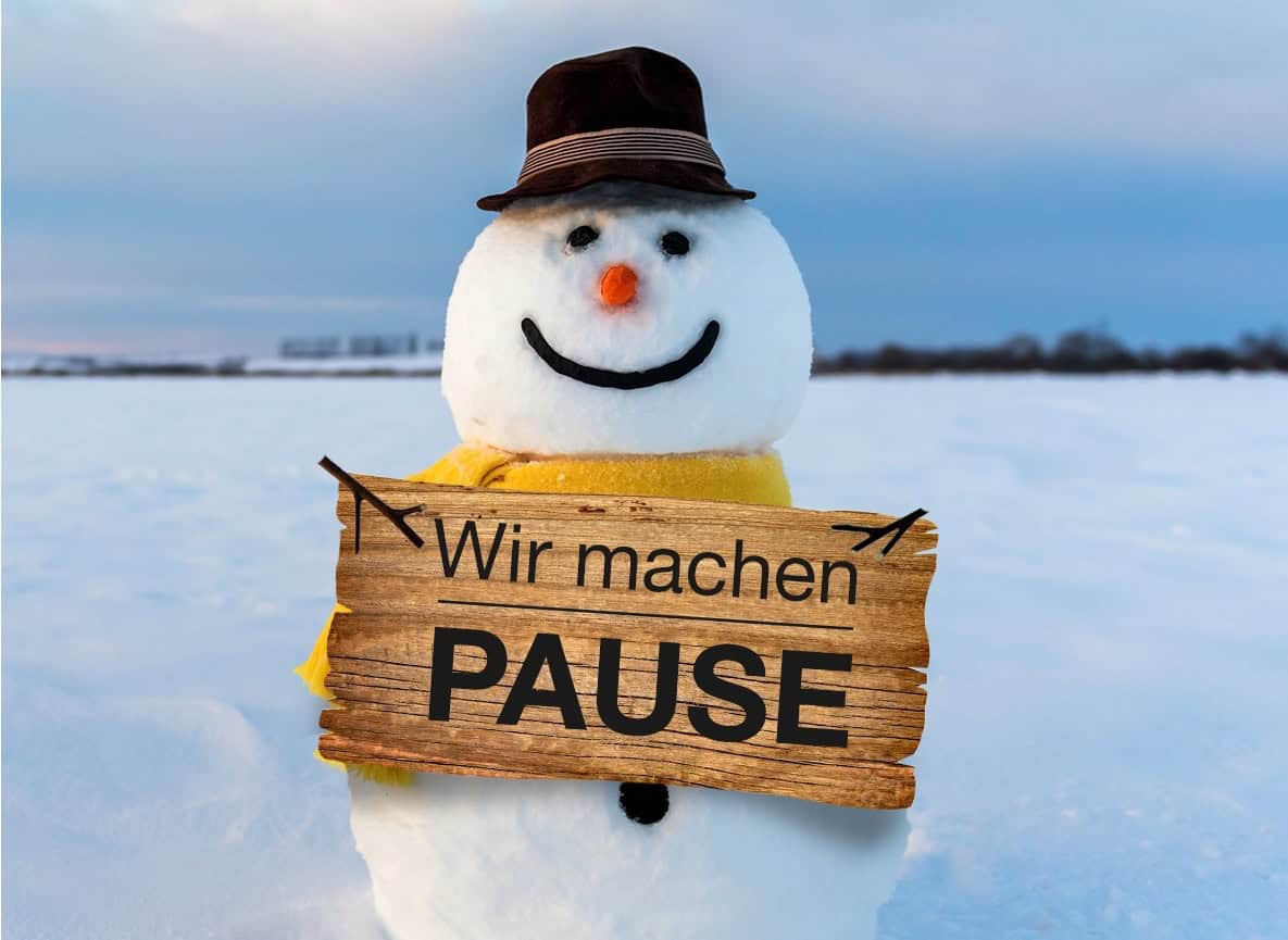 wir möchten Euch darüber informieren, dass unser Betrieb vom 30. Januar bis einschließlich 19. Februar geschlossen bleibt.